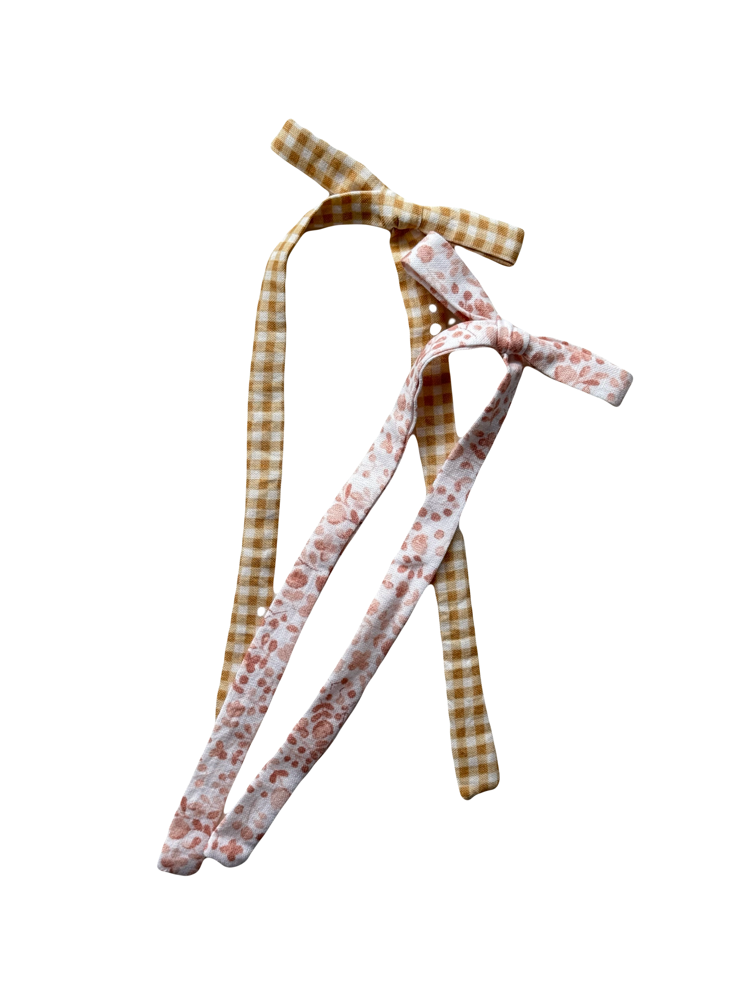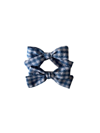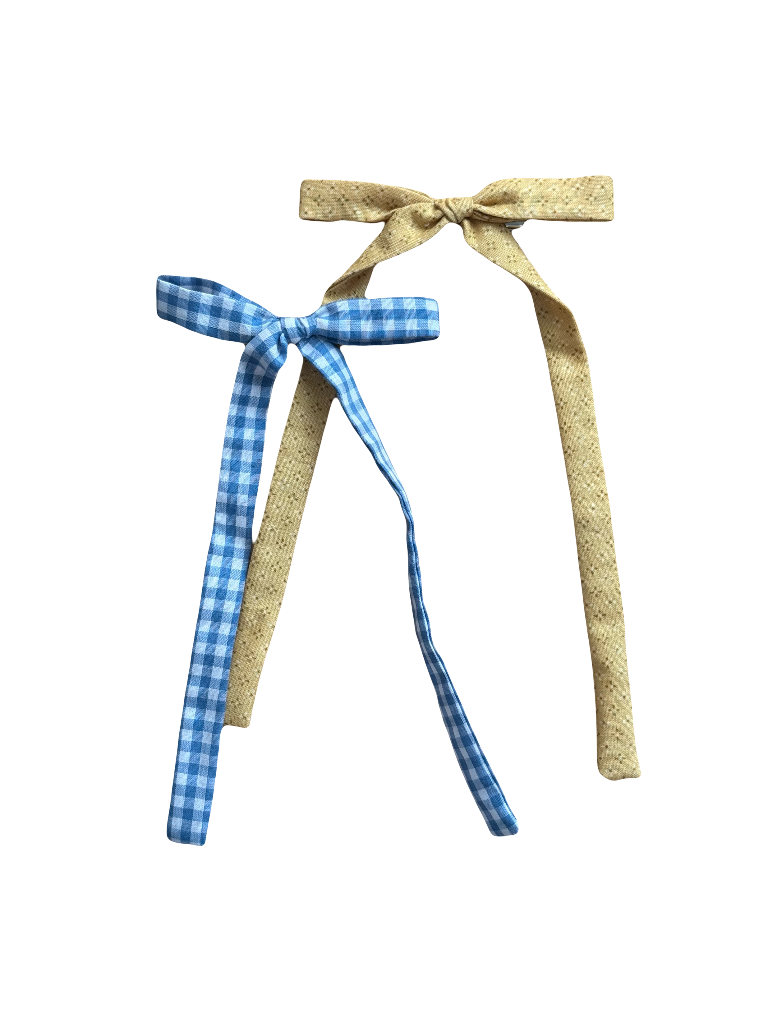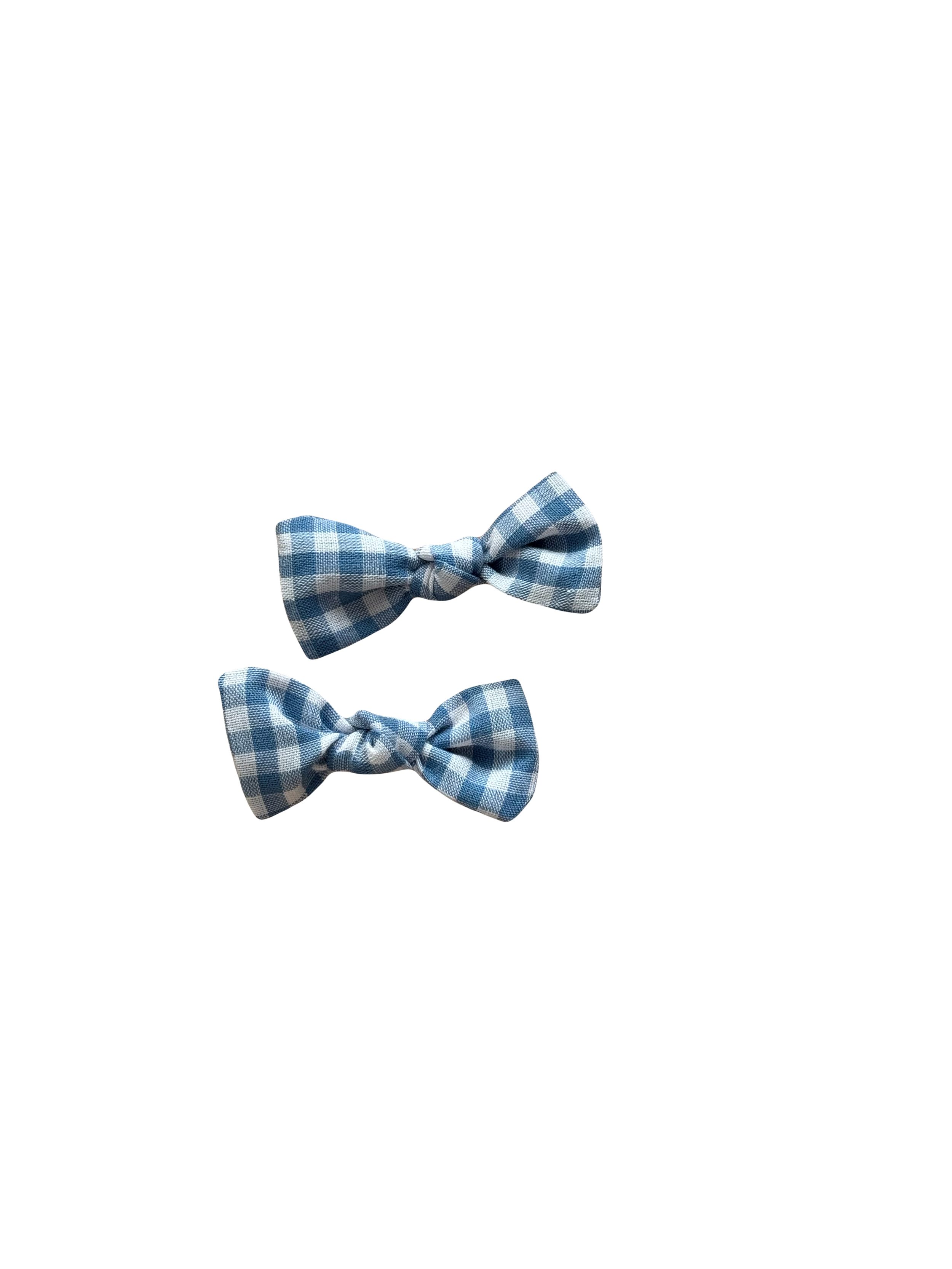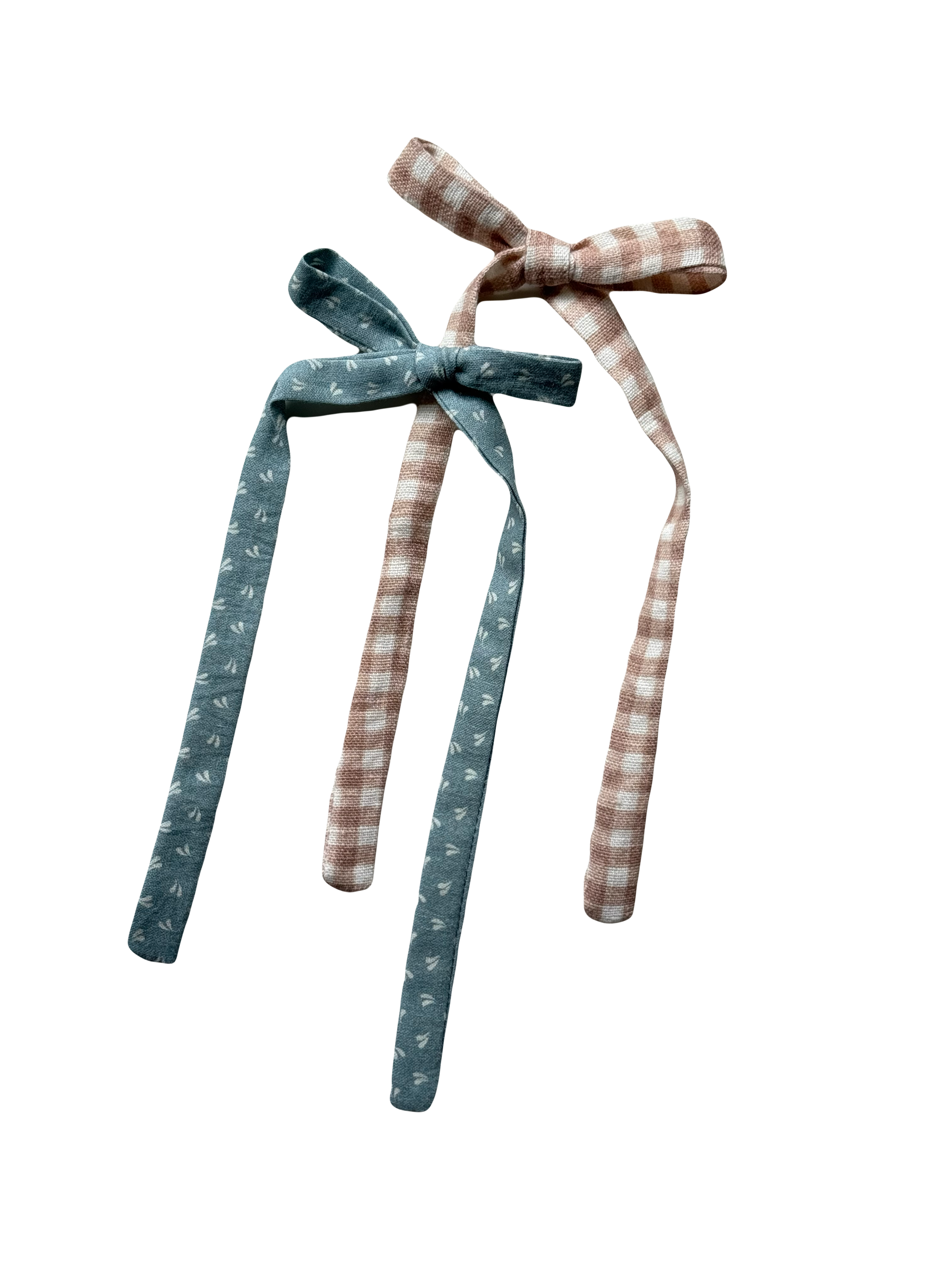 Vintage Long Bow - Vintage Blue, Pink Gingham