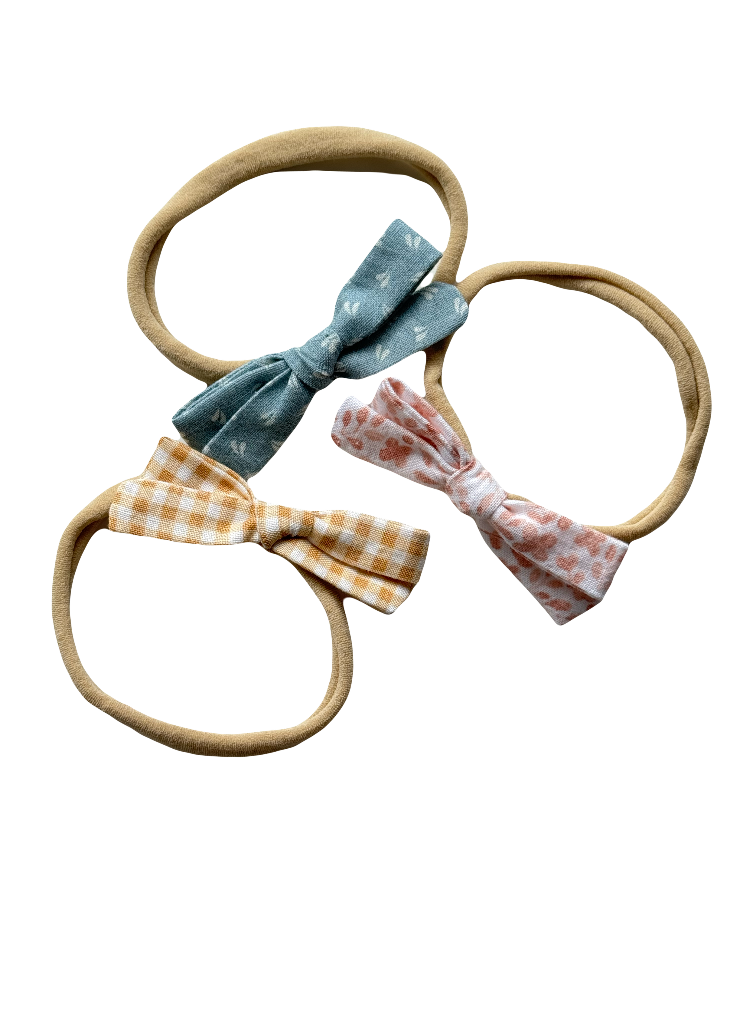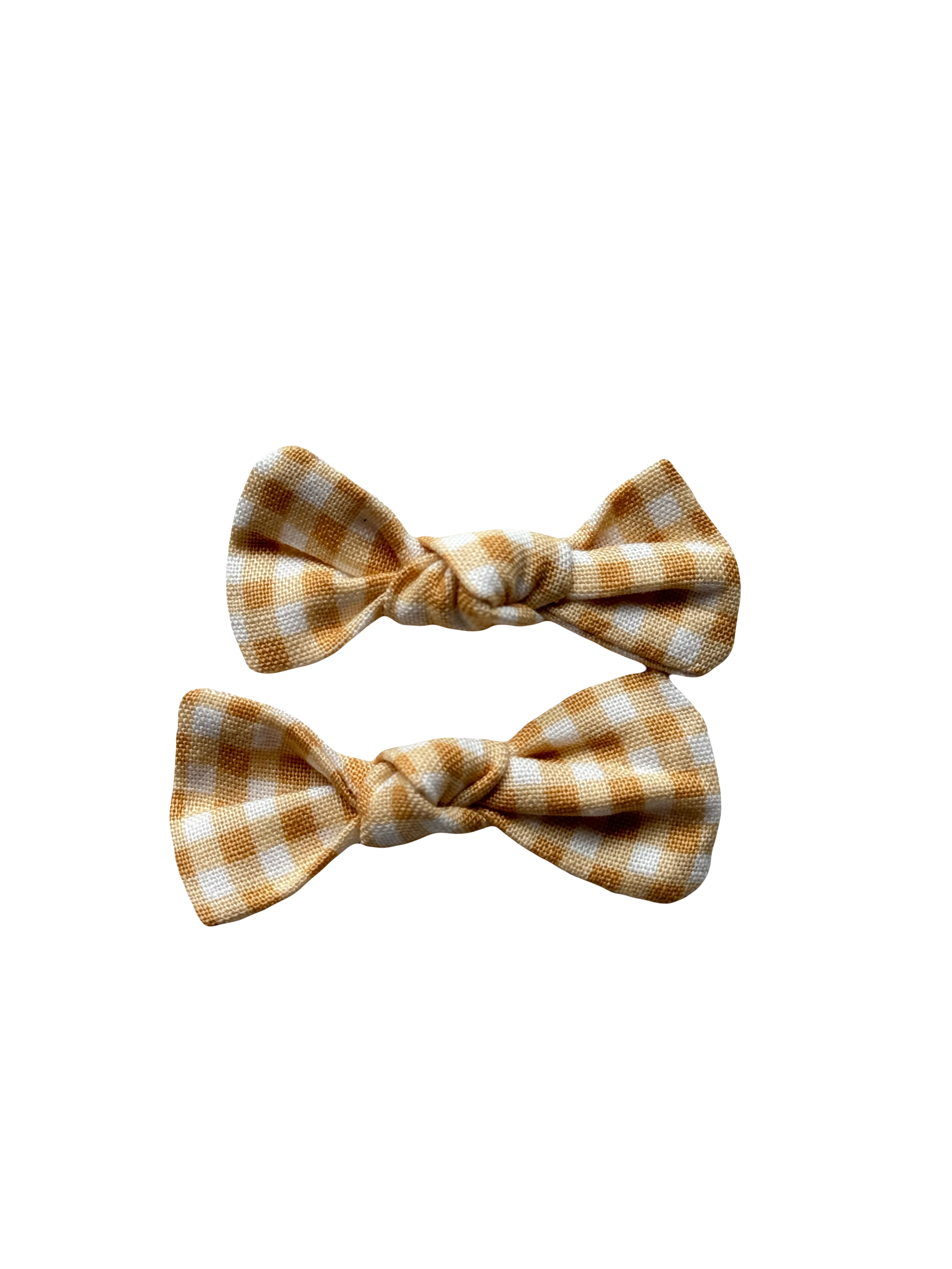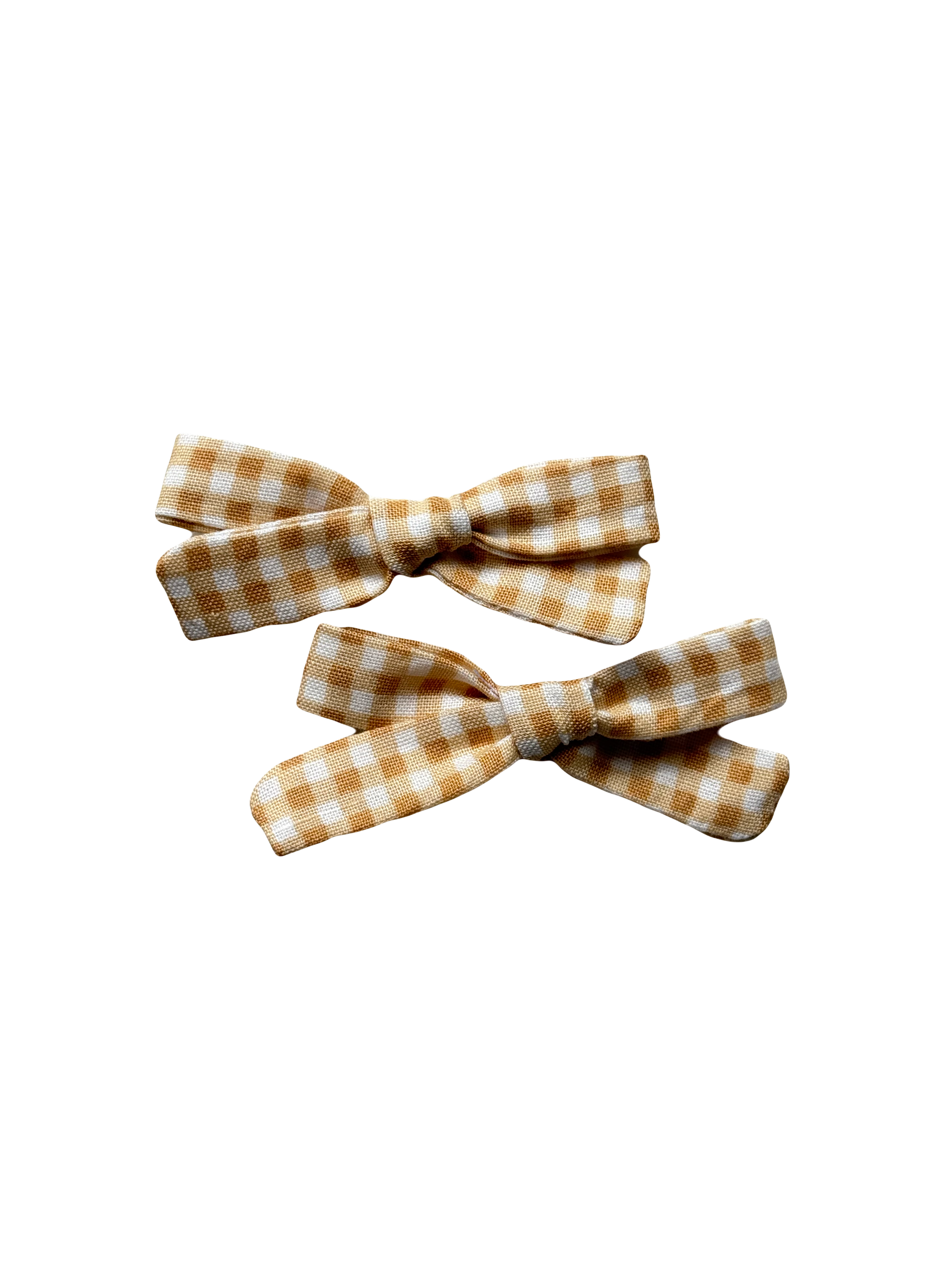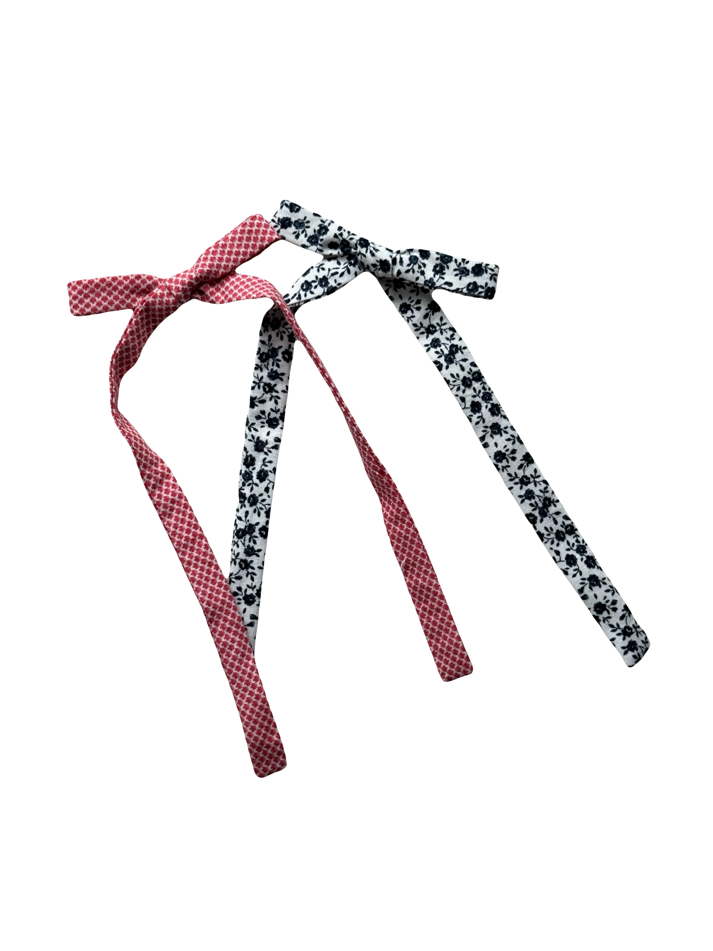 Vintage Long Bow - Vintage Blue, Pink Gingham